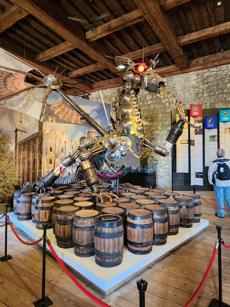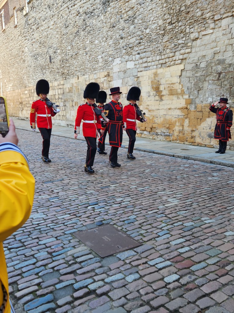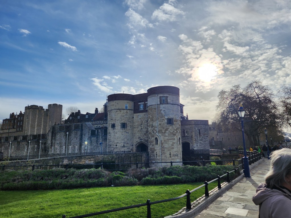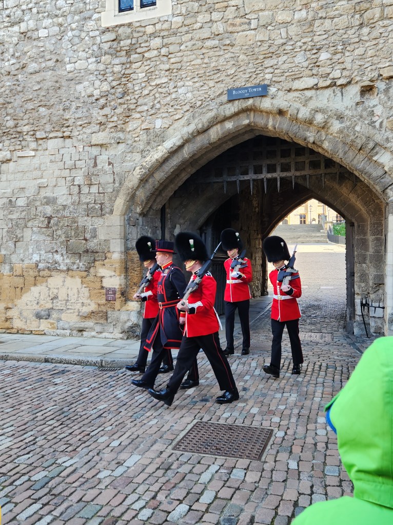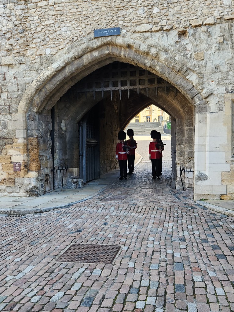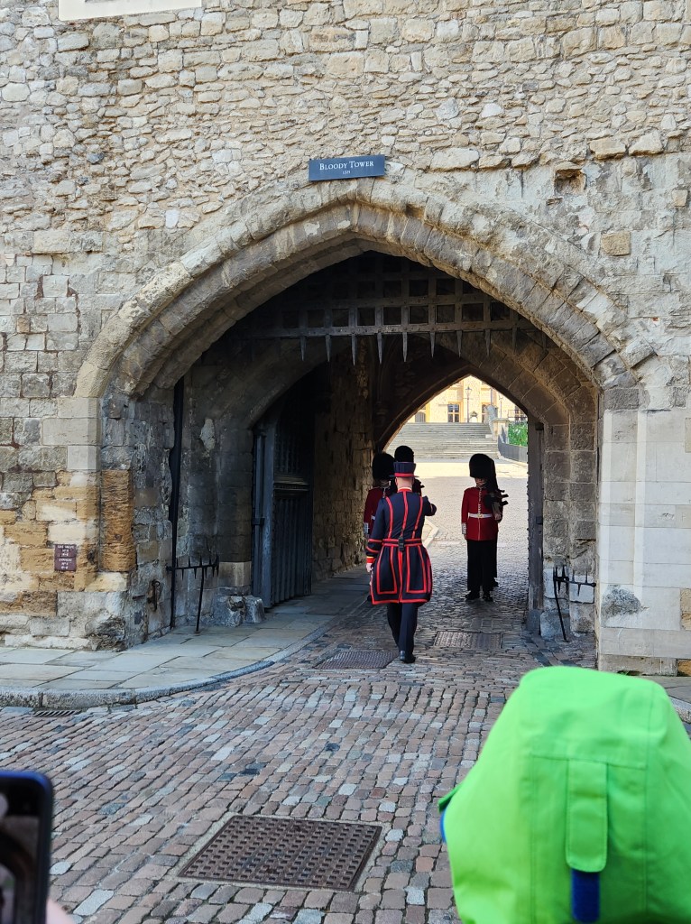 The Tower of London was now open to the public, but we were already inside, which meant that, whatever we wanted to do in there, we got to do it first, before anybody in the crowd of people who were now flooding through the Tower gates. A dear friend had given me some advice that if I wanted to see the crown jewels, I should do that immediately, because the line only gets longer the longer you put it off. So we made a beeline there first, and you know what? My friend was right. We walked in immediately, the jewels were absolutely dazzling (a few are missing because they are being prepared for King Charles’s coronation next month) and within the hour, the queue was insane.