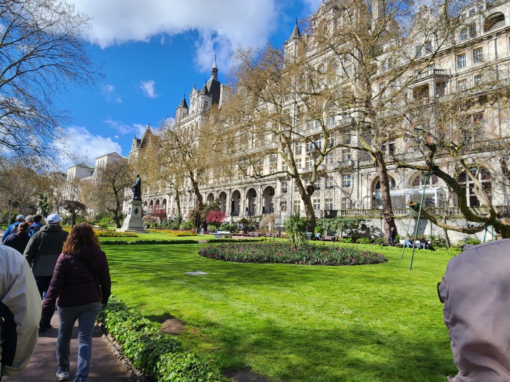 We could see Buckingham Palace, but we couldn’t get super close. Between the crowds and the barriers they’re putting up in preparation for the coronation, it was a huge mess.