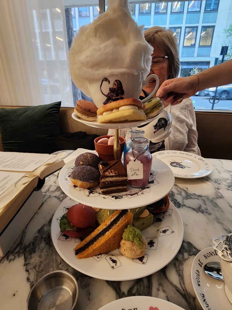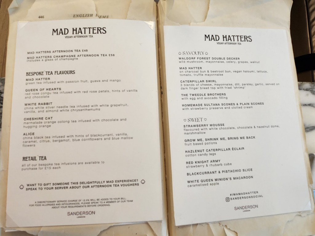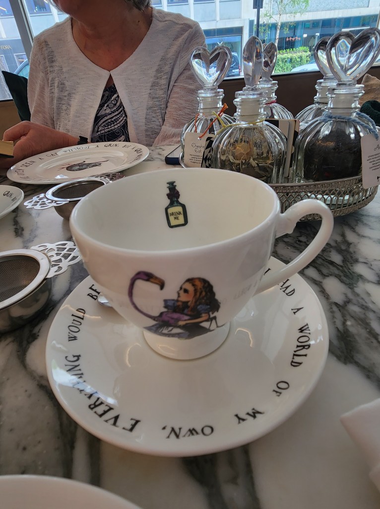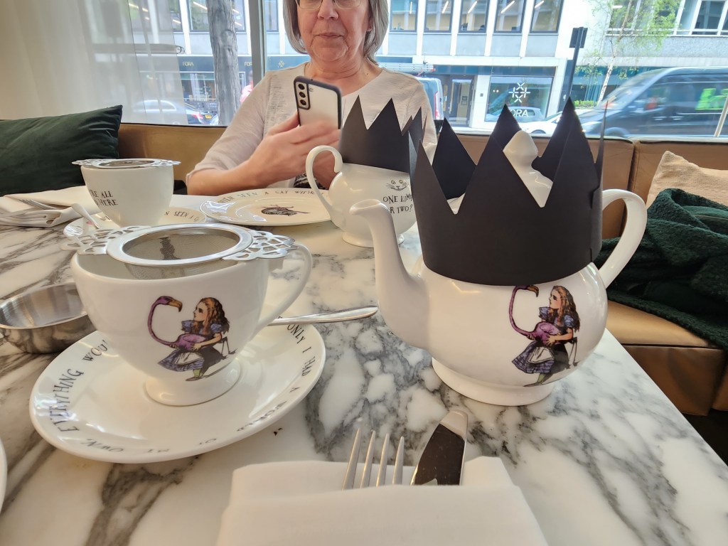 After the ceremony was over, we divided and conquered. Dad went to Churchill’s war rooms, and Mom and I headed to the Sanderson Hotel for tea, which had a very curious theme—one might say, curiouser and curiouser.