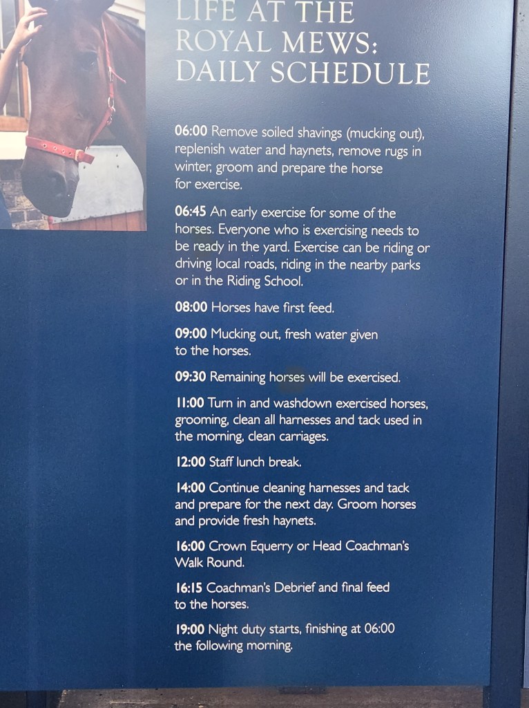 The Mews were cool. Ringed around the outside were apartments, because taking care of horses is a 24/7 job, so those employed at the Mews actually live there. Some of the employees are actually third or fourth generation in the job.