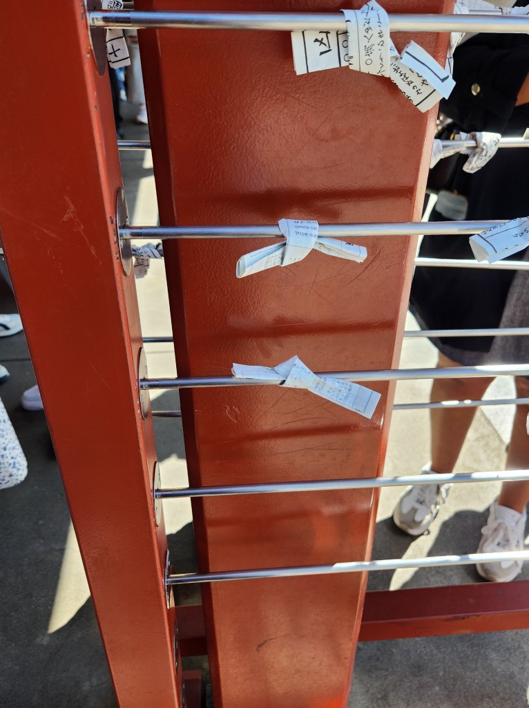 I asked him if it was bad–he said yes, but not to worry. Near the fortunes were little wire racks. If you draw a bad one, you roll it up and tie it onto the rack, leaving the bad luck behind. So I did!