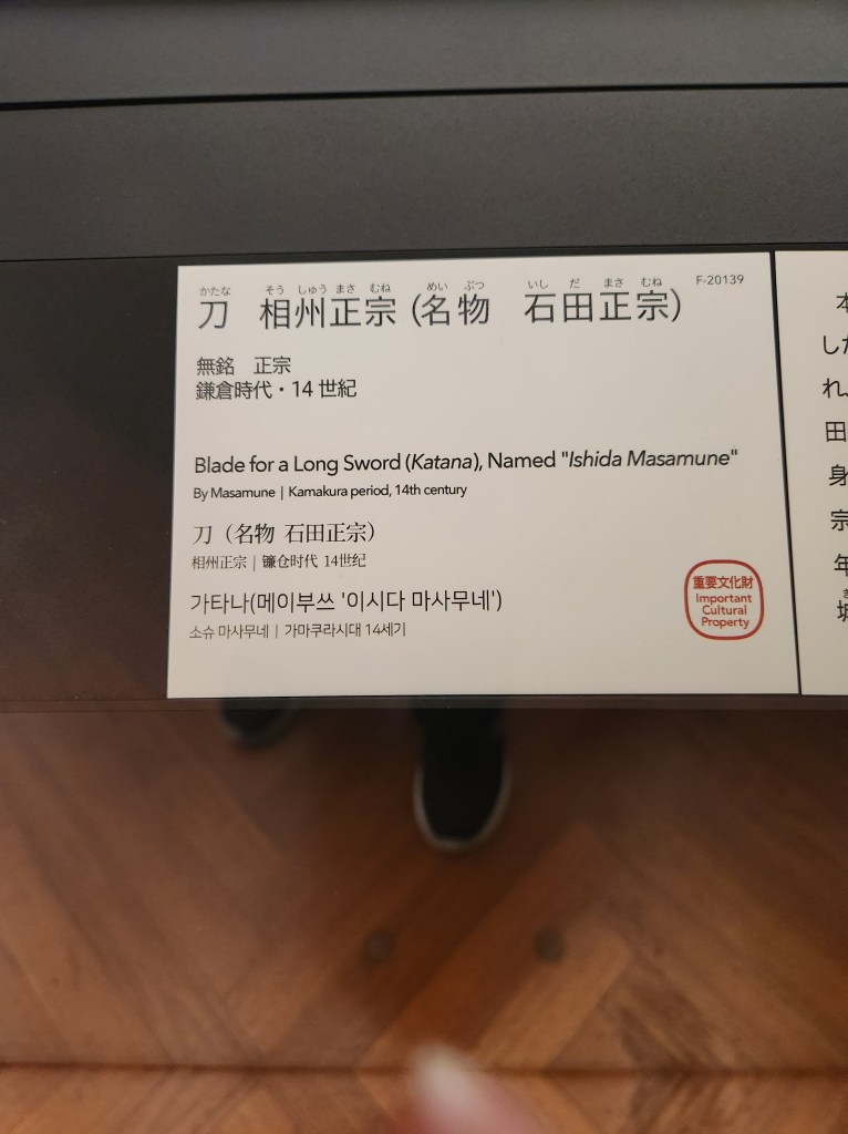 The sword display was everything never knew I wanted from a sword display. All the blades were displayed without their hilts so that you could see the swordsmith’s mark, which would normally be underneath it. The placards explained stuff about not only who used each blade and who made each blade, but HOW. And they were really, really pretty.