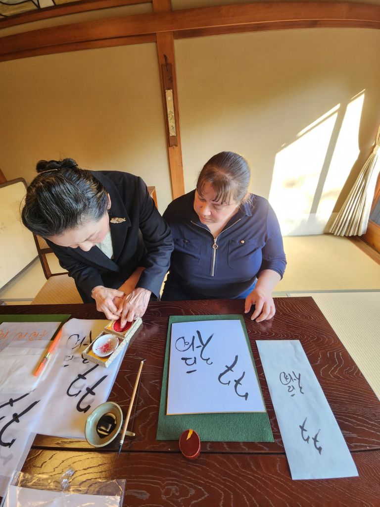After I was settled in, I had an appointment to receive a lesson in Shodo, or Japanese calligraphy, from Kyoko, the elder of the two proprietors. Kyoko doesn’t speak English, so her daughter translated.