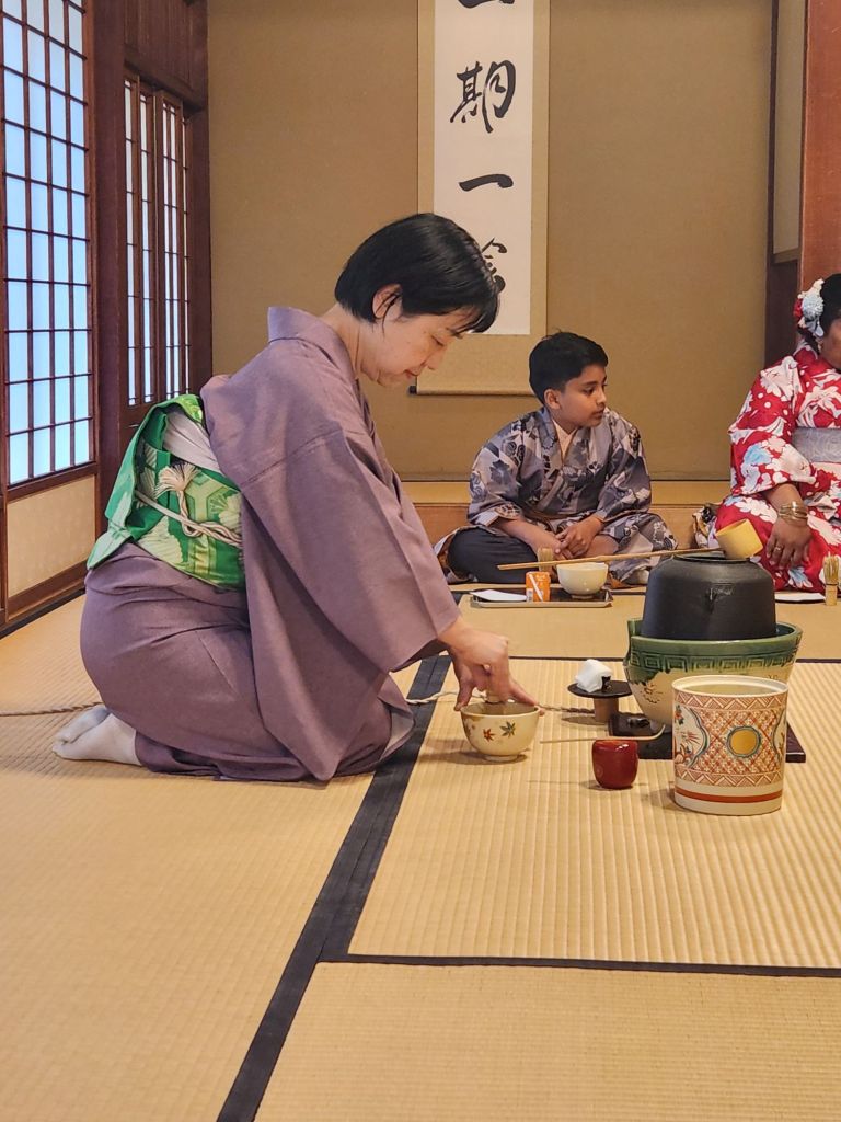 The next step of the ceremony is to purify. We purified ourselves through some deep breathing. Our hostess purified the tea materials by very purposefully wiping them all clean with a cloth.