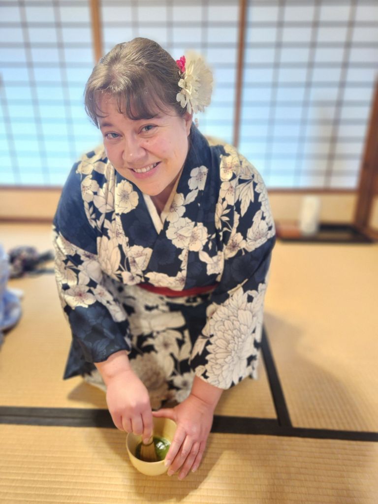 We watched her make matcha, which involved scooping the matcha powder into hot water and whisking vigorously, then it was our turn.
